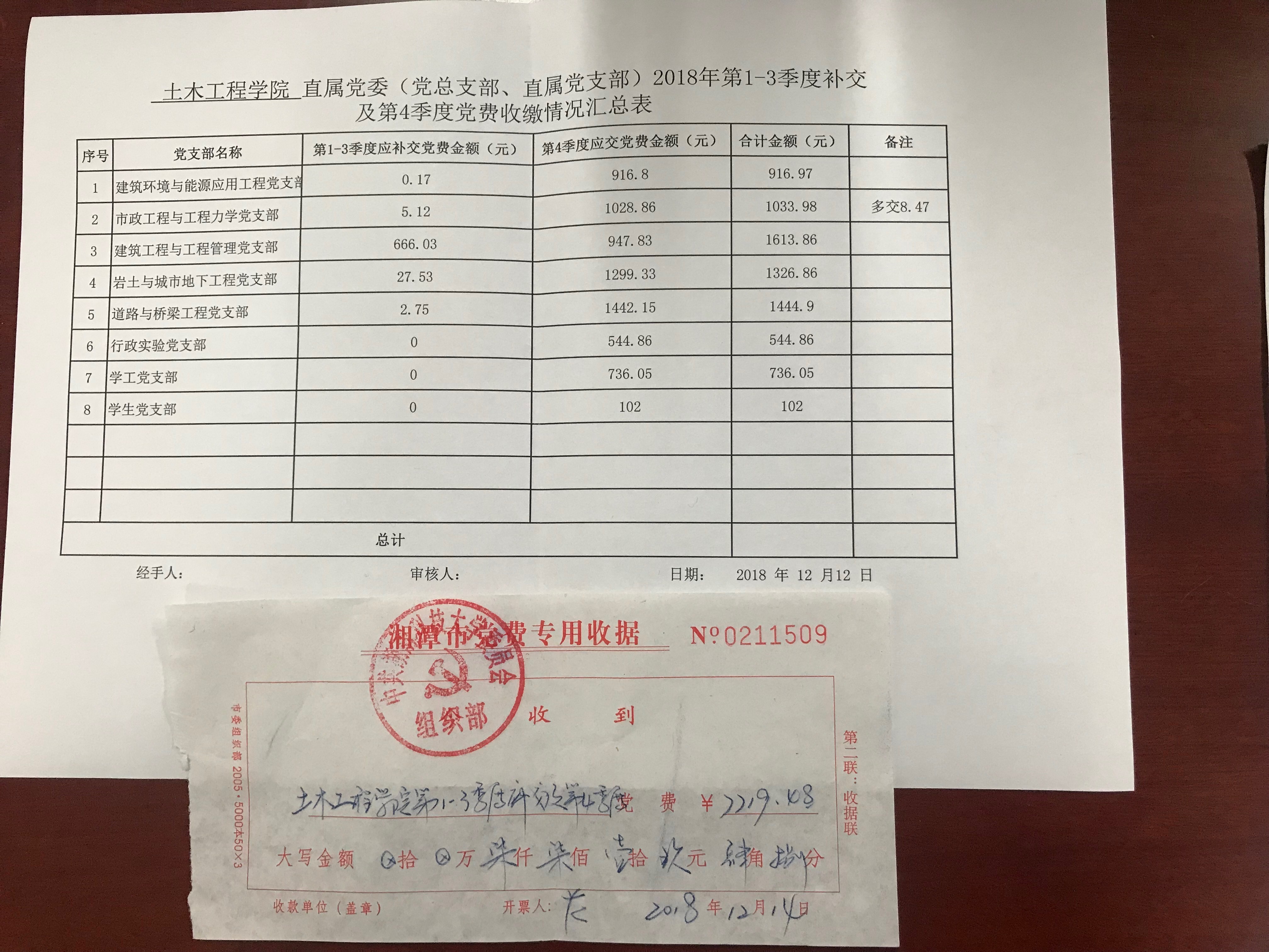 党群工作 党群工作 首页 / 党群工作 / 通知公告 通知公告 土木学院2018年第1-3季度补交及第四季度党费收缴情况汇总表 发布时间:2018年12月14日 编辑: 访问量: beat365亚洲版官网
