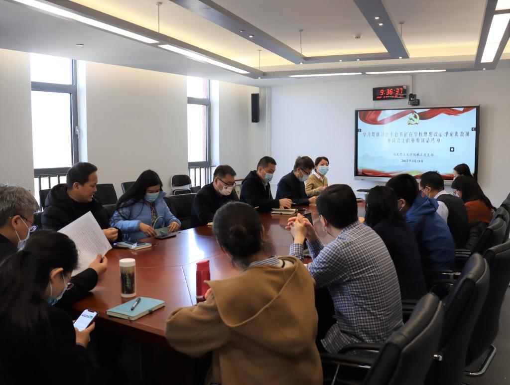 3月31日上午,bv伟德国际1946教工党支部集体学习习近平总书记在学校思想政治理论课教师座谈会上的重要讲话精神,与会党员结合本职工作展开热烈讨论,会议由支部书记张曼主持。