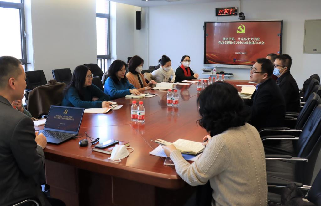 2月13日下午,为深入学习贯彻党的二十大精神,bv伟德国际1946、俄语学院党总支理论学习中心组联合进行理论学习。bv伟德国际1946院长韩强作题为“全面准确理解党的百年奋斗经验”报告。会议由bv伟德国际1946党总支书记祝和军主持。bv伟德国际1946、俄语学院党总支理论学习中心组全体成员参加联学。