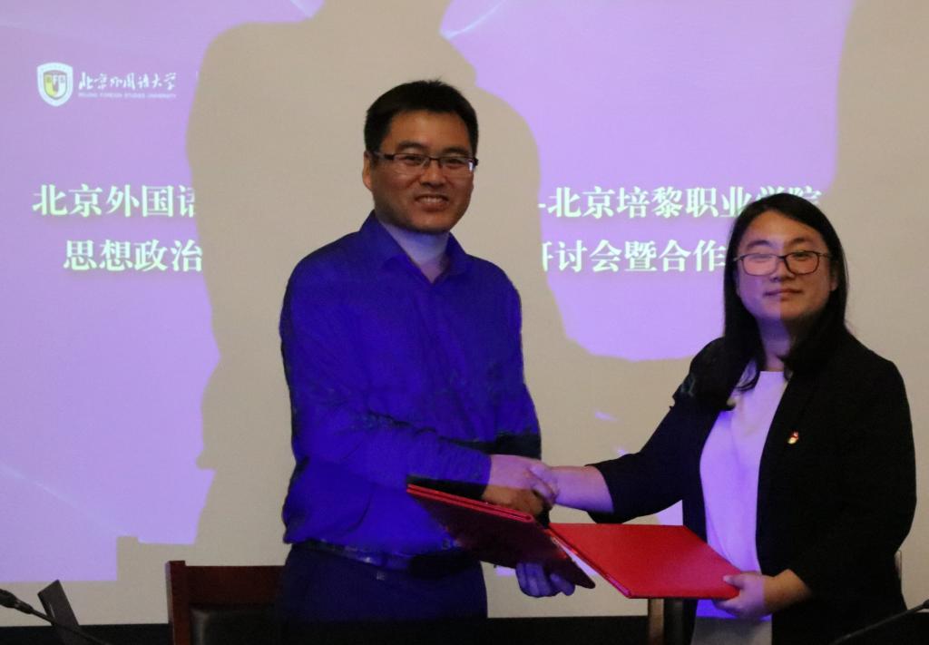 最后,在双方与会人员见证下,bv伟德国际1946党总支书记祝和军与北京培黎职业学院院党委委员、教务处处长李伟丽签署了思想政治理论课共建帮扶合作协议。按照协议约定,双方将围绕思政课教师队伍建设、思政课教学改革、思政课集体备课、课程观摩、教研课题申报、教学学术会议研讨等多个方面开展深度合作。