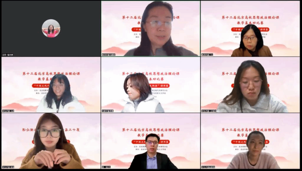 为深入学习宣传贯彻党的二十大精神,充分发挥思政课在推动党的二十大精神“三进”中的主渠道作用,经过紧张周密的筹备,由北京高教学会中国近现代史研究会主办、我院承办的第十二届北京高校思想政治理论课教学基本功比赛“中国近现代史纲要”课预赛于11月28日在线上举行。来自北京大学、清华大学、中国人民大学、bv伟德国际1946等高校的33名青年思政课教师参加了比赛。