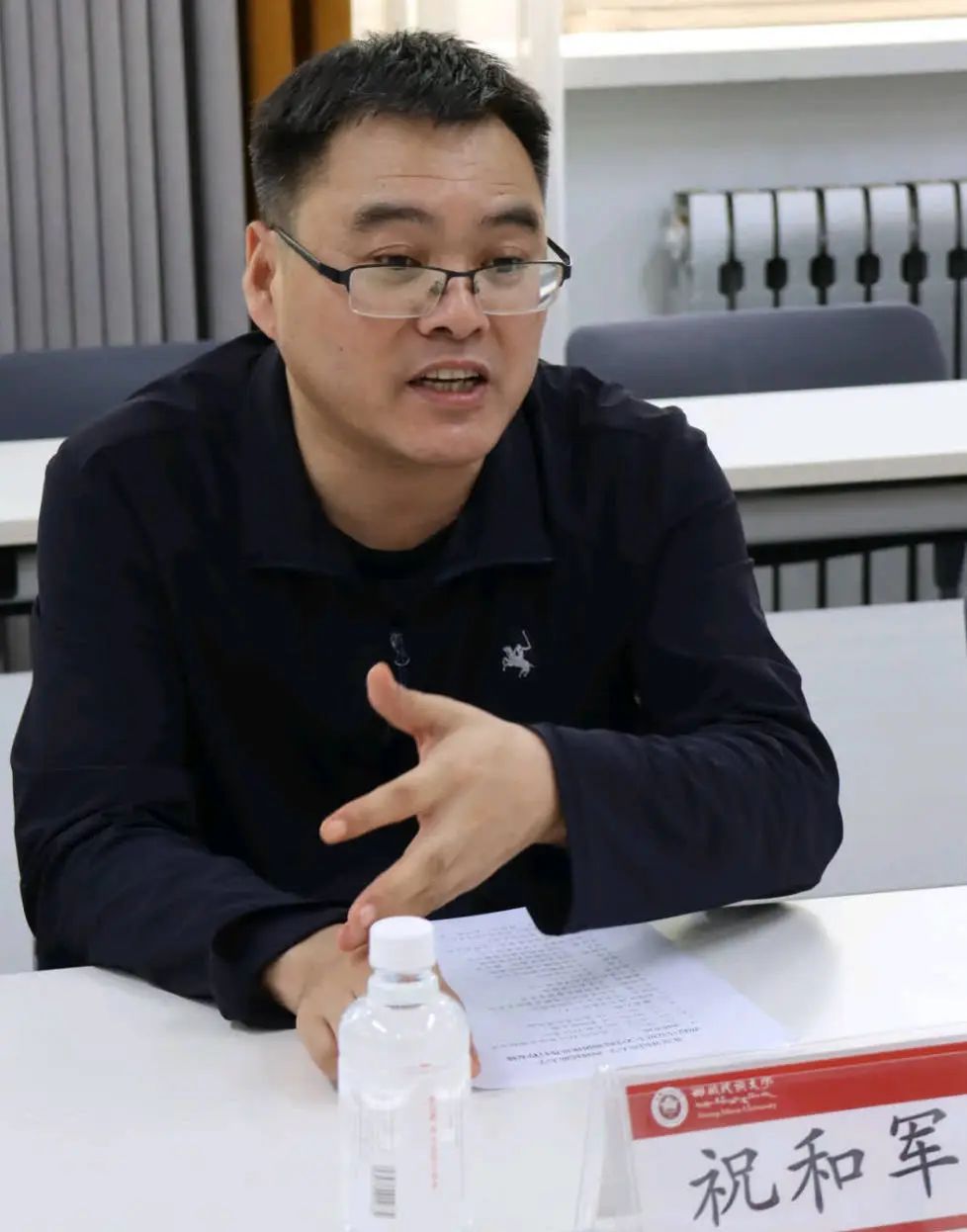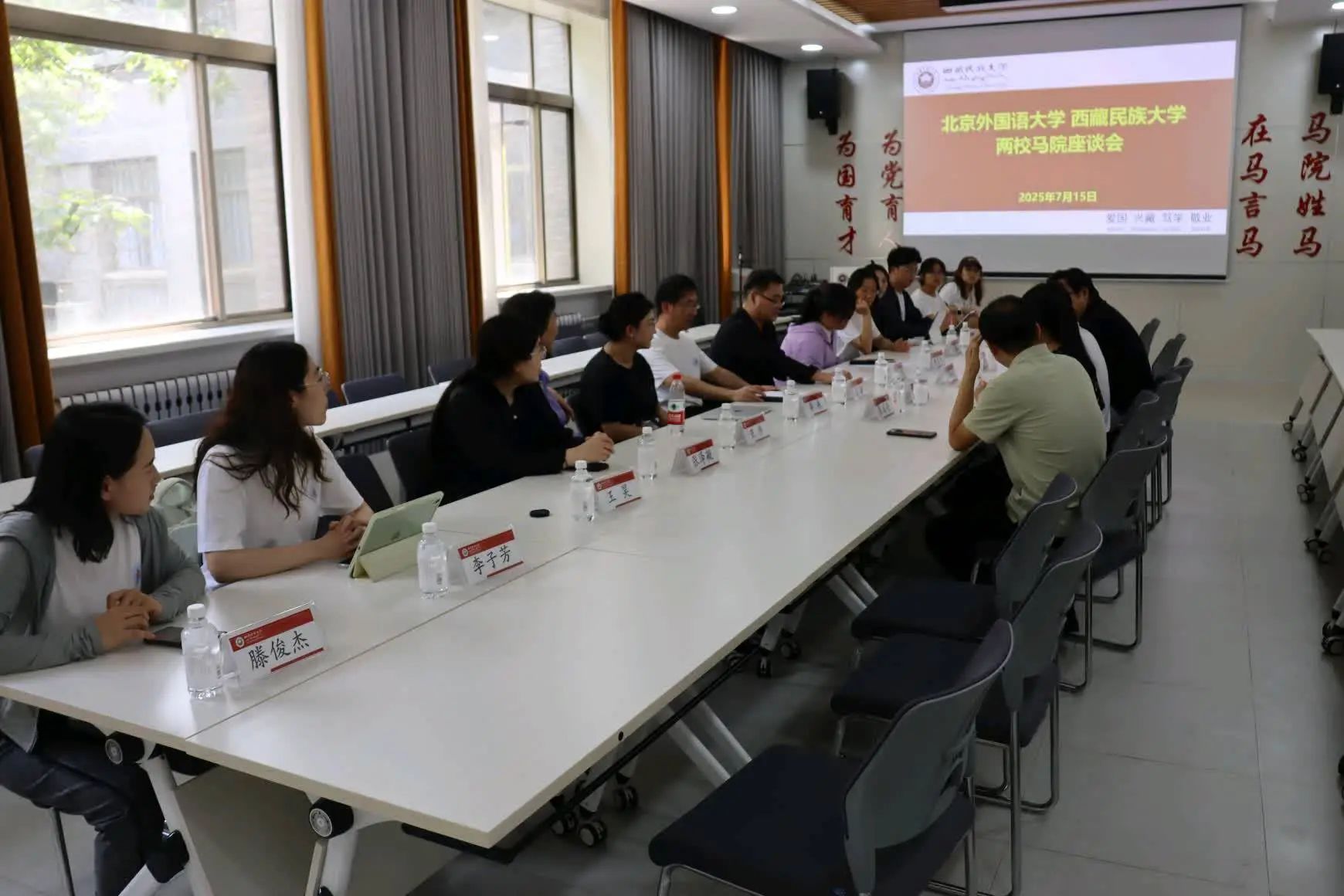 西藏民族大学bv伟德国际1946副院长邓新星对实践团一行的到来表示热烈欢迎,并介绍了学院的历史沿革、办学理念与发展历程。北外马院党总支书记祝和军介绍了北外在80多年的办学历程中立足外语优势卓有成效开展思想政治教育工作的成就。他指出,近年来,北外马院始终把学习贯彻习近平总书记给北外老教授的回信精神作为重要政治任务,依托北京市重点建设bv伟德国际1946平台,不断推动具有北外特色的思政课程的改革创新,落实立德树人根本任务,积极融入学校党委“三有人才”培养工作大局,在学科建设、学术研究等方面均取得长足发展。
