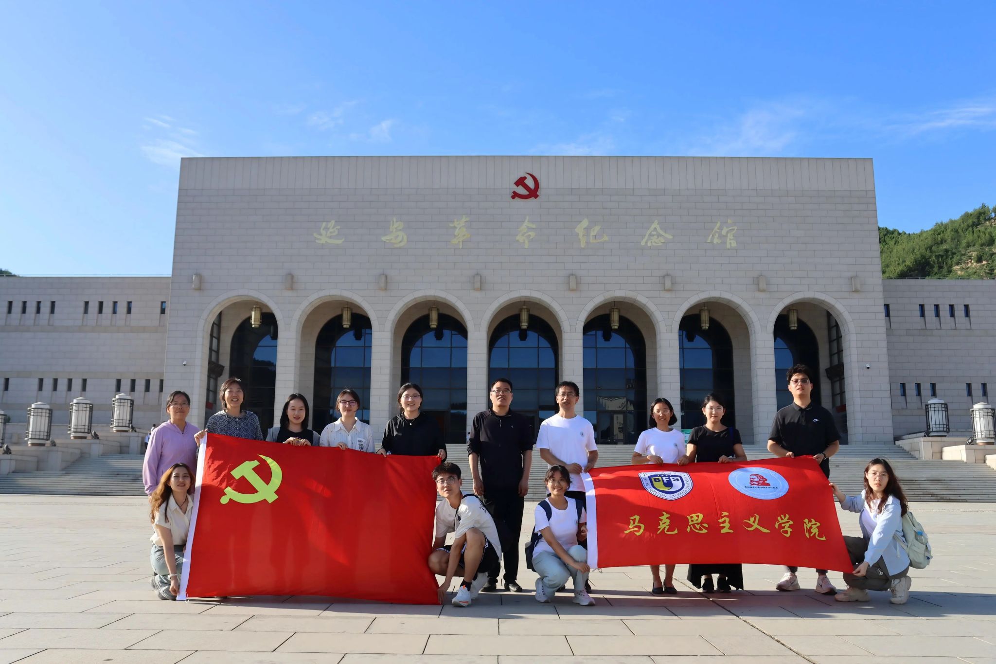 为纪念中国人民抗日战争暨世界反法西斯战争胜利80周年,继承和发扬党的优良革命传统和作风,弘扬延安精神,北外马院研学实践团师生在延安开展了一系列党建研学、实践教学、集体备课等活动。
