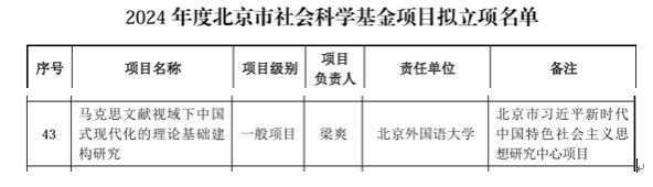 2024年12月28日,北京市社会科学基金项目、北京市习近平新时代中国特色社会主义思想研究中心项目“马克思文献视域下中国式现代化的理论基础建构研究”开题论证会在bv伟德国际1946举行。会议采用视频会议的形式,梁爽课题组作开题报告,来自北京大学、清华大学、北京第二外国语学院和bv伟德国际1946的专家进行评议,北京市习近平新时代中国特色社会主义思想研究中心bv伟德国际1946研究基地负责人和科研处代表参加会议。北京市社会科学界联合会、北京市哲学社会科学规划办公室派专员参会。