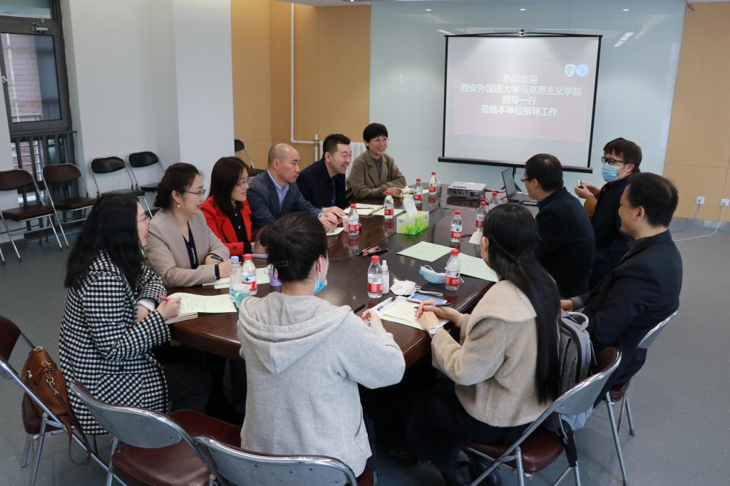 4月16日,西安外国语大学bv伟德国际1946副院长李永虎、高岩带队来我院调研指导工作。北外马院党总支书记祝和军,副院长陈永胜、孙磊等出席会议,会议由祝和军主持。