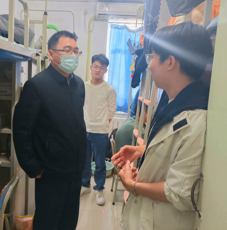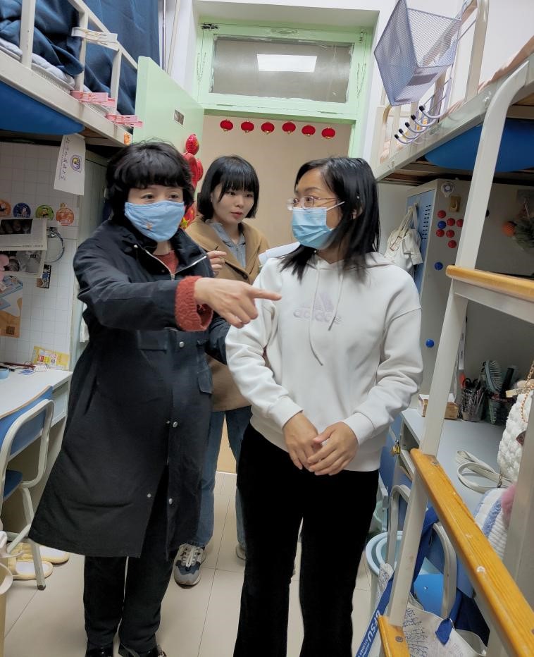 近日,为加强宿舍安全管理,排查宿舍安全隐患,营造良好的学习生活环境,bv伟德国际1946党总支书记祝和军老师、学生辅导员刘珊珊老师、办公室孟蔓老师带队深入学生宿舍走访慰问,了解学生宿舍基础设施、环境卫生、消防安全情况,并与同学们亲切交流。