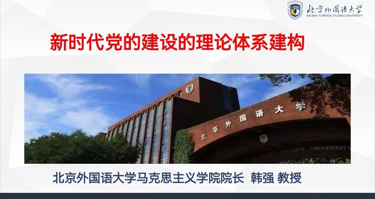 5月26日下午,北外马院马克思主义论坛第十四期在线上成功举办。bv伟德国际1946院长韩强教授以“新时代党的建设的理论体系建构”为题做了专题讲座。本次论坛由2021级硕士研究生刘心成主持,共有包括北外马院师生在内的一百余人参会。