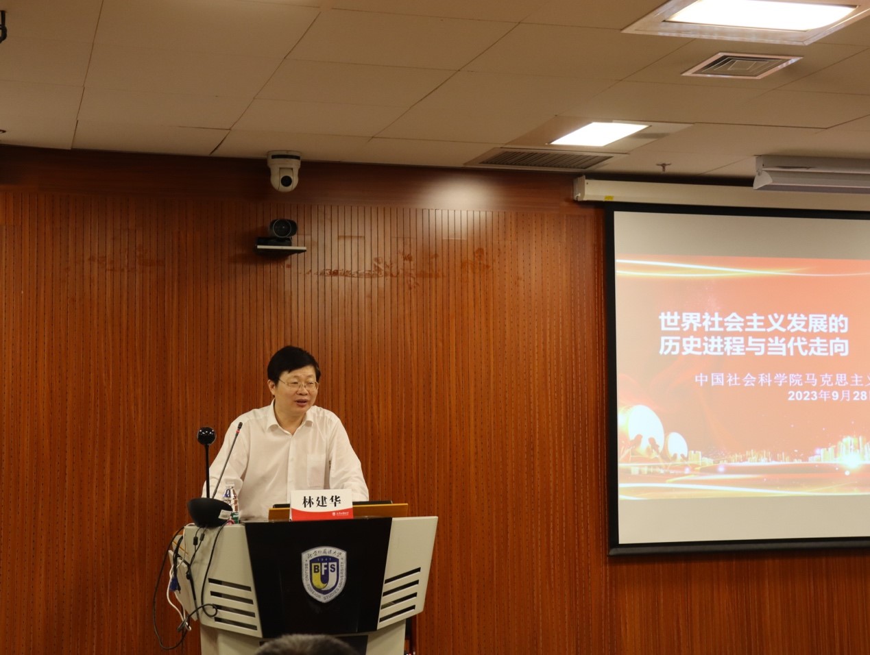 9月28日,北外马克思主义讲堂第十四期在国际大厦417教室成功举办。中国社会科学院马克思主义研究院副院长林建华教授应邀为我院师生作题为“世界社会主义发展的历史进程与当代走向”的专题讲座。讲座由bv伟德国际1946院长韩强教授主持。