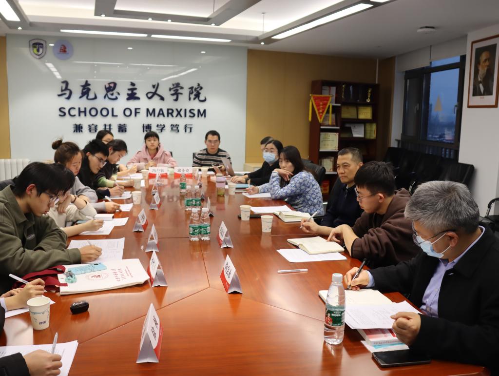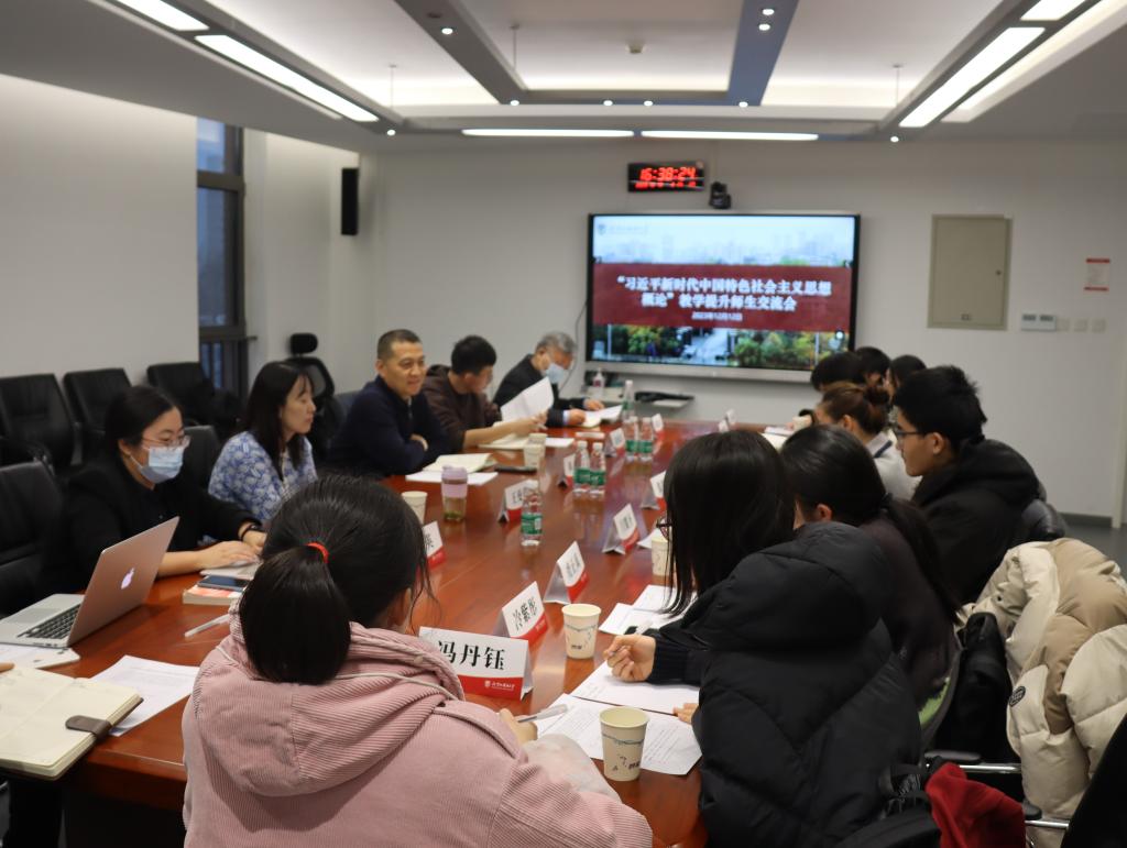 在座谈中,同学们畅所欲言,分别从阅读马克思主义经典著作、拓宽中西对比的学术视野、以适当的课程难度激发学习兴趣、进一步加强课堂管理等方面,对开好学好“习近平新时代中国特色社会主义思想概论”课提出了意见建议。教师代表尚会永、周英、梁爽从教材体系向教学体系转化、经典著作、党的文献同教材的关系、宽广中西学术视野和深邃理论史视野的结合、学术研究方法论和日常教学内容的内在联系、教学内容和教学形式的辩证关系等方面,与同学们进行了深入交流。信息技术中心教师赵成涛汇报了学校用现代化教学技术手段为“习近平新时代中国特色社会主义思想概论”课提供有力支持的具体措施。