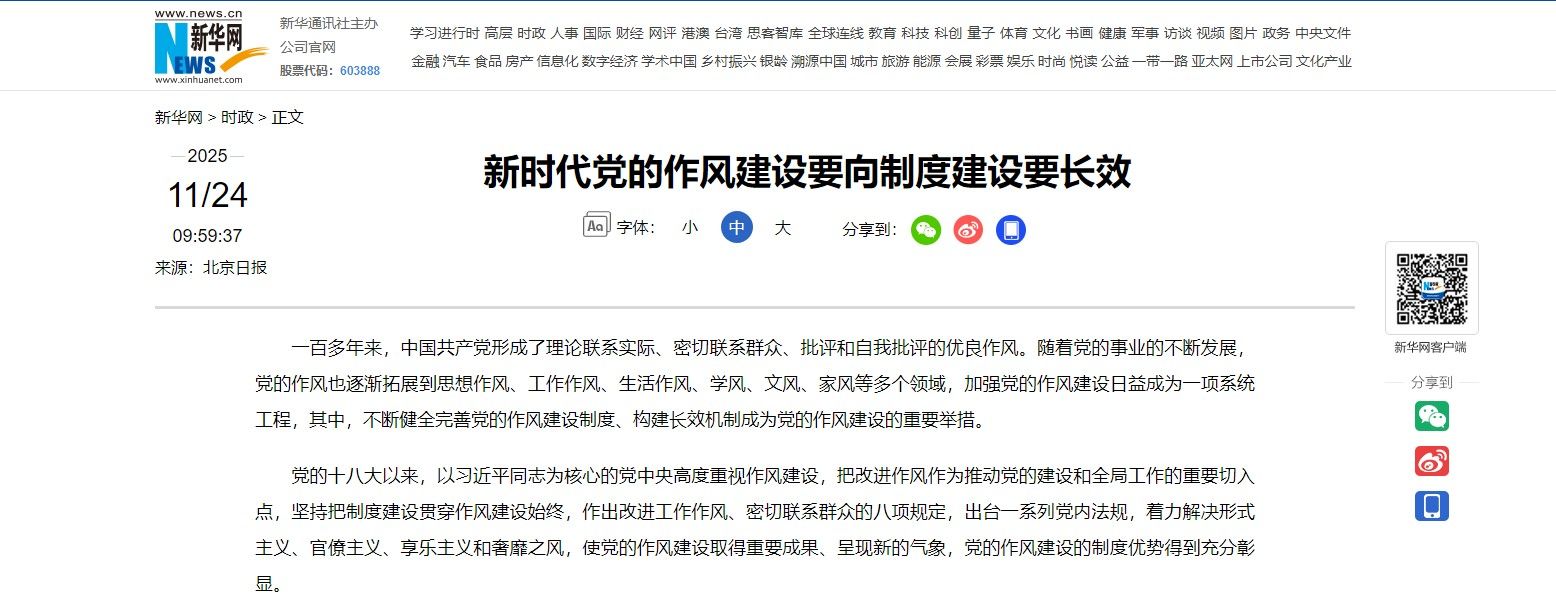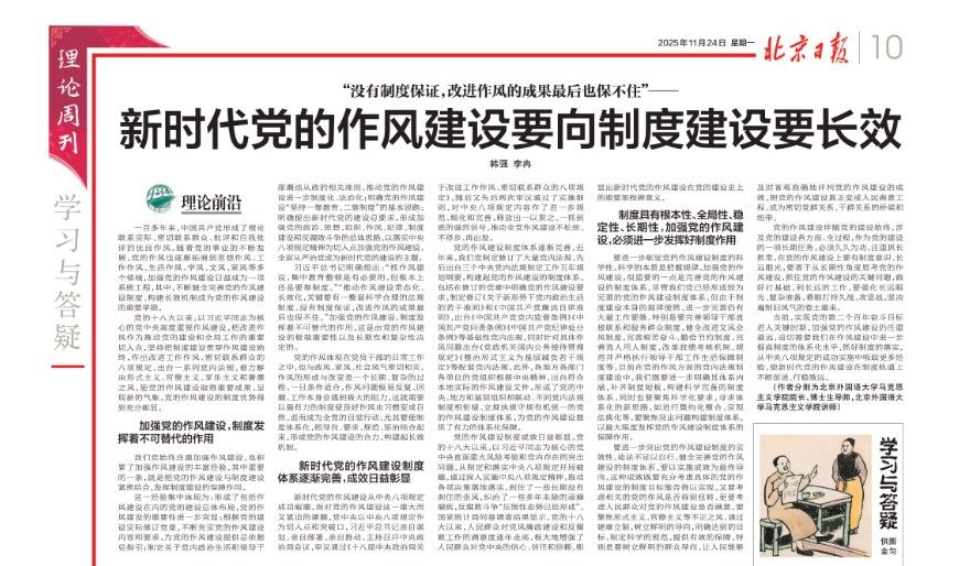 20251124日,《北京日报》理论周刊刊发我院院长韩强教授与青年教师李冉合作文章《新时代党的作风建设要向制度建设要长效》,新华网给予转发。