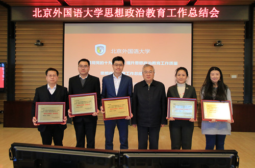 1月10日上午,我校大学生思想政治教育工作总结研讨会在图书馆五层举行。会议全面总结了2017年学校大学生思想政治教育工作,表彰了在思想政治教育工作领域成绩突出的集体和个人。bv伟德国际1946与英语学院、日语系、高级翻译学院、国际商学院获得北外“德育先进集体”荣誉称号。党委书记韩震为获奖集体颁奖。
