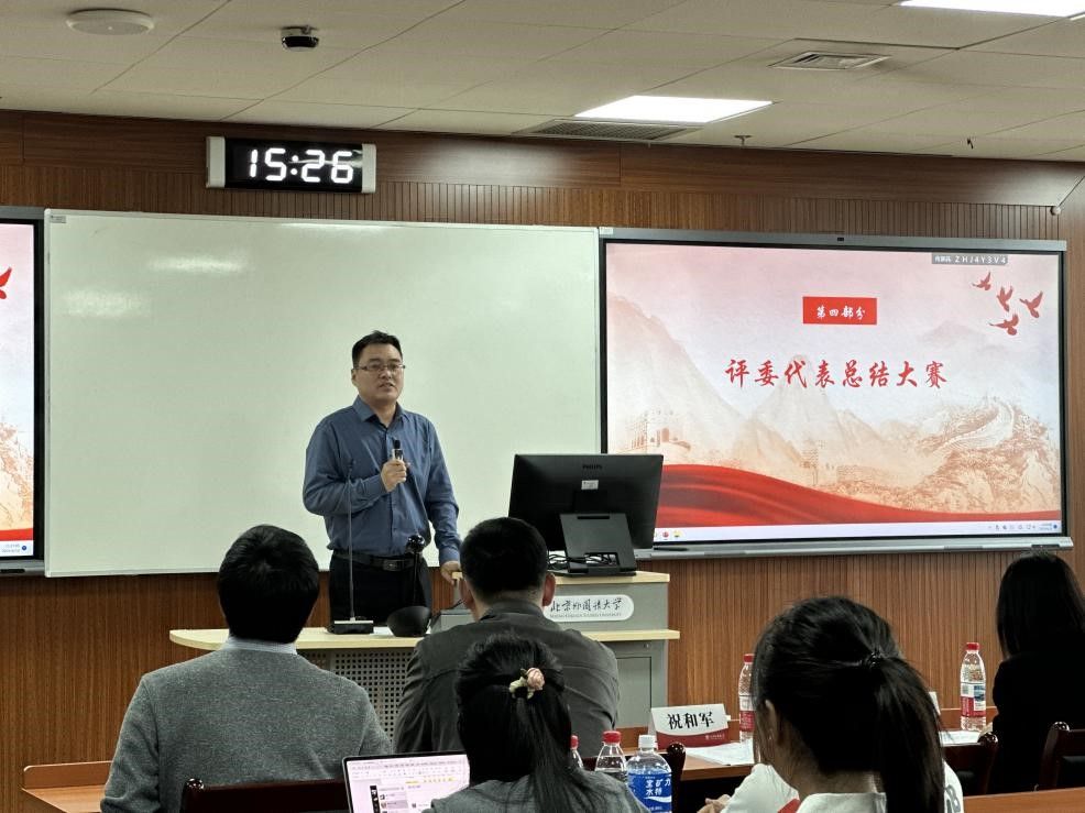 祝和军老师作总结发言。他表示,学校党委高度重视大思政格局构建和大思政课建设,讲好新时代伟大变革的故事,展现北外青年新征程上的责任担当,是大思政课建设的重要内容。本次比赛宣讲内容丰富多样,形式新颖独特,非常契合大赛主题。希望大家能够进一步拓宽国际视野,提高外语水平,正确认识当代中国和国际比较,在把中国介绍给世界,让世界更好地了解中国方面作出更大的贡献。