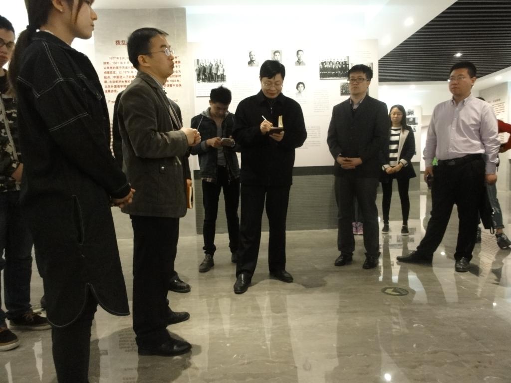 校史馆内,老师和同学们认真观看了我校七十多年来各个时期发展变化的文字、 图片、实物等宝贵资料,校史馆馆长姚胜老师也就学校诞生 背景、办学历史、知名校友以及校园规划进行了详细讲解。大家对学校各个时期的沧桑发展历程感慨万千,对学校历来重视政治素质培养和思想政治教育的光荣传统表示了由衷的赞叹。从一幅幅珍贵的照片中,大家发现,学校在75年的办学历程中始终将政治学习放在了人才培养的突出位置,真正做到了政治为本,育人为先。早在延安时期,外国语学校的教育方针就是在政治教育的同时进行业务学习。业务学习时间占80%,政治学习时间占20%。建国初期,外国语学院更是将人才培养目标定位为:“掌握马列主义理论知识,具有较广博的中外语言文学及外国历史地理的基础知识和初步国际事务知识的翻译人才。”