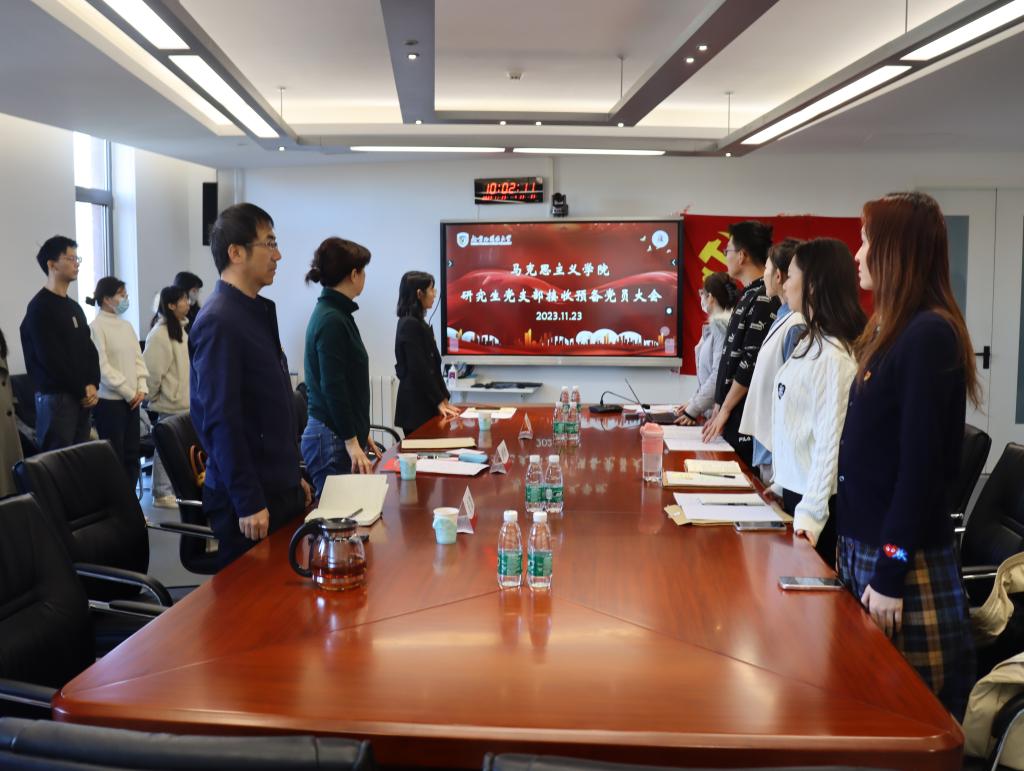2023年11月23日上午,bv伟德国际1946研究生党支部召开接收预备党员大会。学校党委组织部组织员齐巧玲、bv伟德国际1946党总支组织员王浩参加会议。