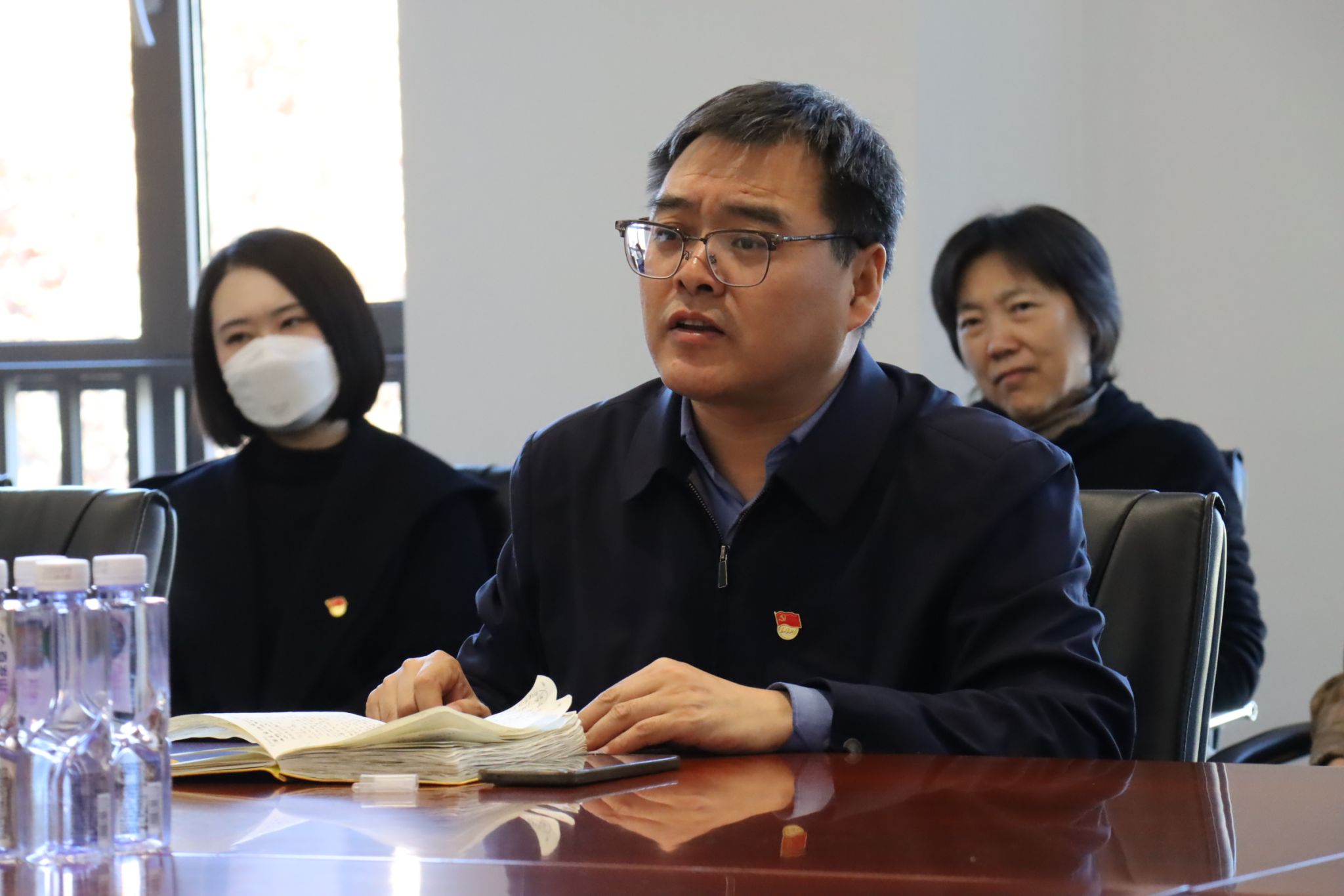会上,尚会永、郭小香两名党员教师分享了四中全会精神的学习体会,并结合各自所授课程谈了具体做法。尚会永强调要在教学中重点讲清楚 “十五五”规划编制工作所凸显的我国的制度优势,引导学生坚定制度自信;要结合国家未来发展蓝图,引导学生做好专业与职业规划。郭小香认为,要落实好立德树人根本任务,将教育家精神融入教学环节,培养学生的法治意识与道德素养,培育合格的社会主义建设者和接班人