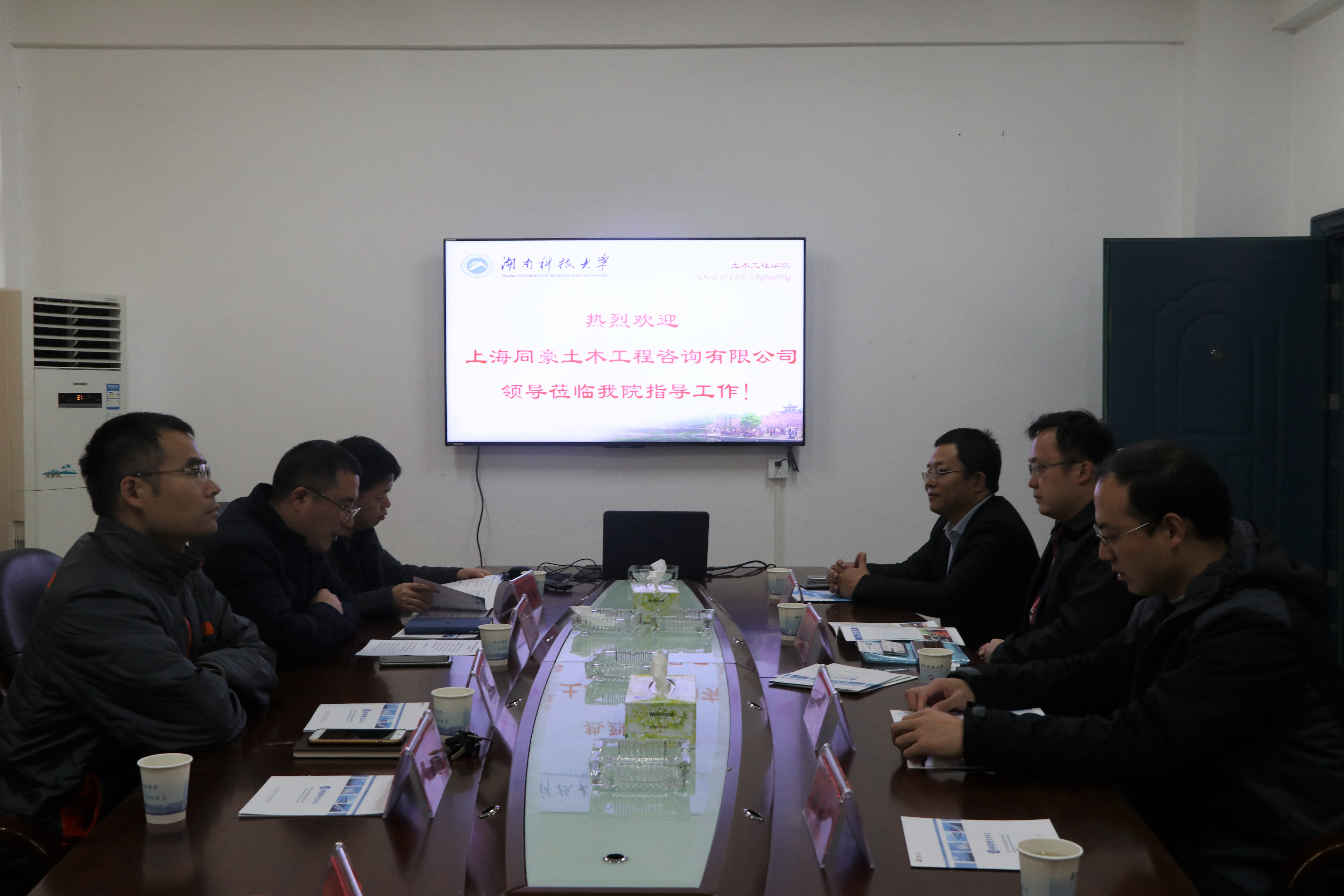 12410:30土木楼214会议室隆重举行了上海同豪土木工程咨询有限公司beat365亚洲版官网校企合作授牌仪式。上海同豪土木工程咨询有限公司董事韩吉峰、高校中南区总经理李宏涛、专业技术支持张楠,beat365亚洲版官网院长祝明桥、副院长郝小礼、副院长孙洪鑫副院长汪建群、建筑工程系系主任黄海林、工程管理系系主任肖全东出席,并就合作内容进行深入交流。副院长郝小礼主持本次会议。