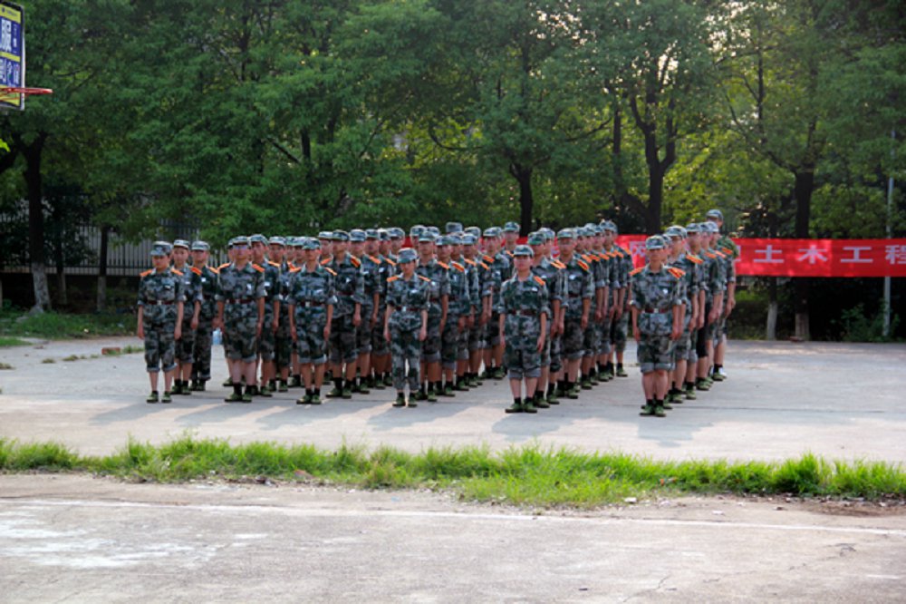训练场上你们抱腹定腿,闷热难耐的你们卷裤腿站军姿。训练中教官严苛指导,休息时分军歌嘹亮欢声连连。阳光下,你们的侧脸总是那么坚毅那么迷人,顺颊而下的汗水湿透了你们的衣襟,炯炯有神的目光带去了你们新的方向。军训,大学的第一课!