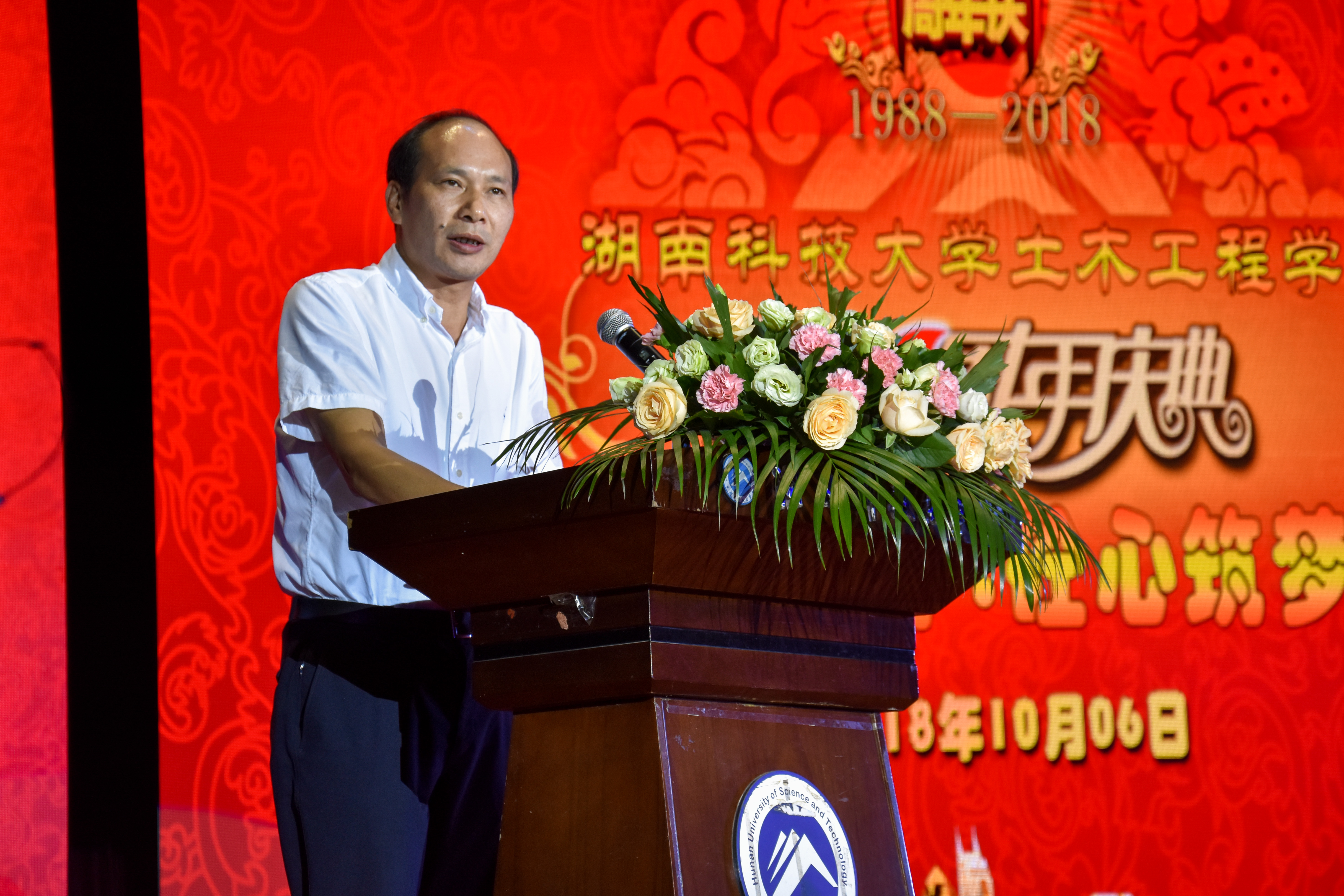 beat365亚洲版官网院长祝明桥致欢迎词,他对各位到场领导、嘉宾,各位校友,各兄弟单位、企业及全体师生表示热烈的欢迎。他紧接着以学院及专业的演变与发展为主线,详细介绍了土木学院30年来,在学校党委行政的正确领导下,依托学校的综合性优势屡创佳绩。“未来我们要在习近平新时代中国特色社会主义思想的指导下,不忘初心,牢记使命,砥砺前行,再创辉煌!”