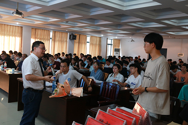 前来听报告的学生挤满过道和走廊,气氛非常活跃,同学们就碳中和路径、先进技术、能源革命有关的热点研究内容、中南大学新能源科学研究领域的研究方向,以及硕士生招生政策等内容与廖教授进行互动交流。